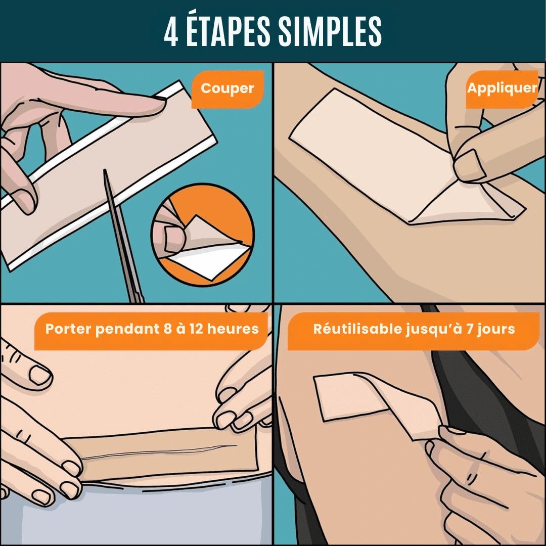 ❌ À éviter : appliquer sérum/crème sous la bande (empêche l'adhérence)